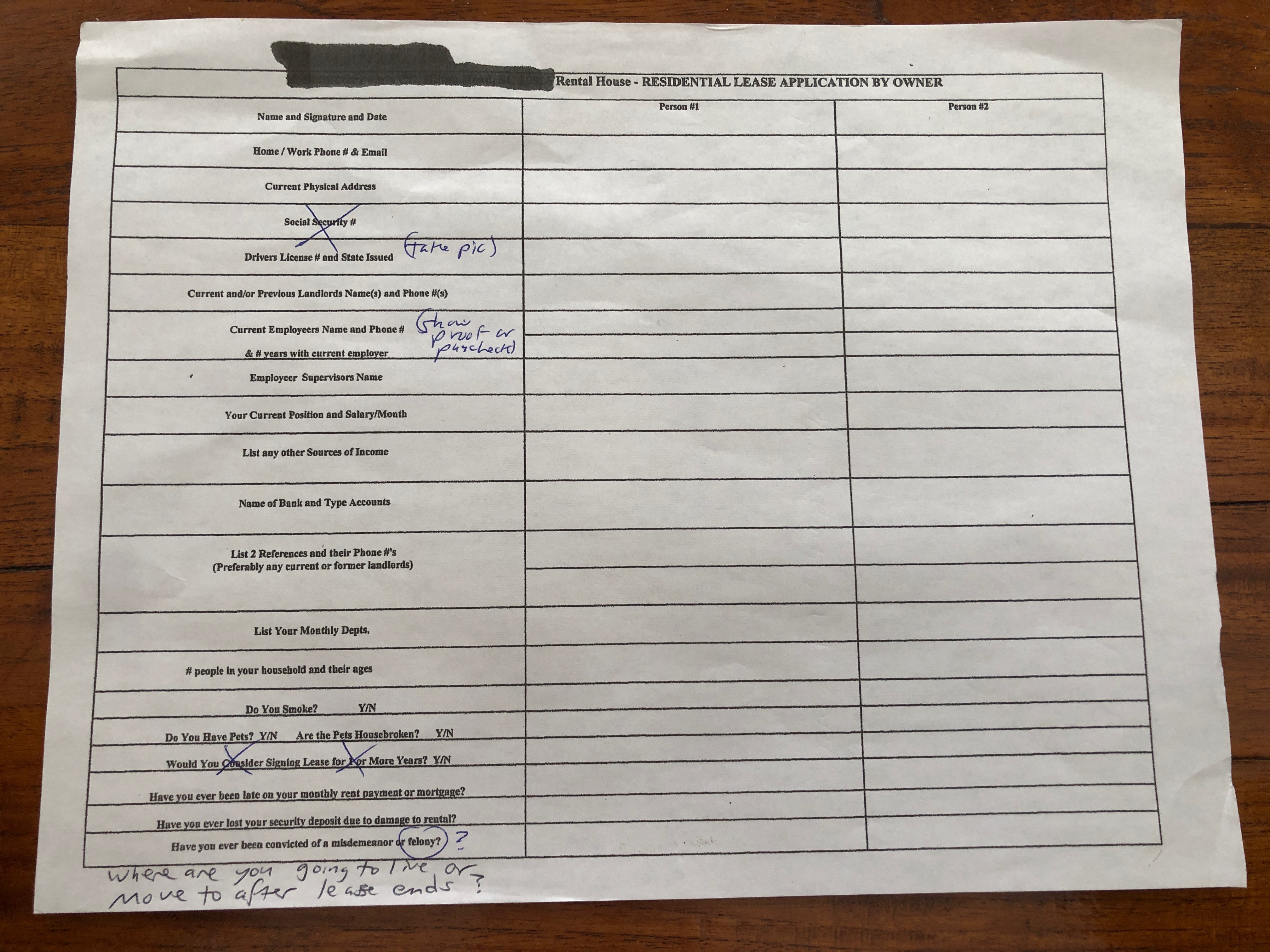 Provide proof that You Have a Place to Move Into After rental from Us? Y/N